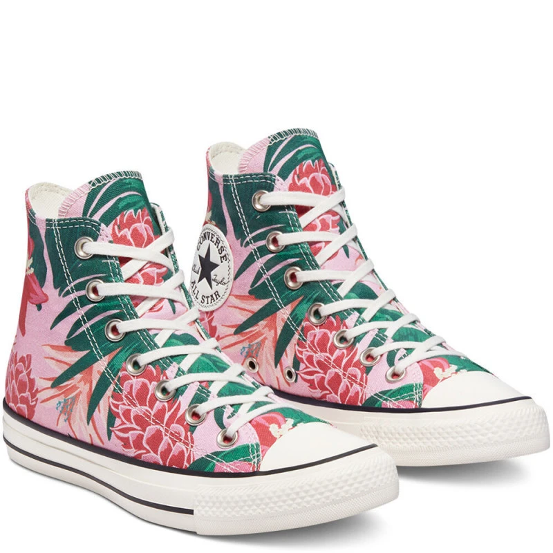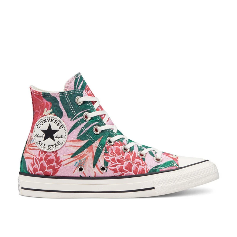 En 1917, dans le Massachusetts aux USA, Converse adapte ses modèles et crĂ©er la lĂ©gendaire ALL STAR. Basket en toile brune, Ă tige haute, semelle Ă bout caoutchoutĂ© et laçage sous Ĺ“illets. La chaussure qui rĂ©volutionne le jeu des basketteurs grâce Ă sa bande autour de la semelle pour une meilleure traction, et au rajout d’une pièce autour de la cheville assurant sa protection. C’est Charles Chuck Taylor, le premier-phare du basket-ball qui, sĂ©duit par la marque l’a rendra populaire en 1921. La signature du sportif s’ajoute au patch Ă©toilĂ© des authentiques ALL STAR ; la « Chuck Taylor » est nĂ©e. Converse dĂ©cline son modèle purement sport en modèles d’usage mixte. Dans les annĂ©es 50, on la voit aussi bien sur le campus de Stanford qu’aux pieds des ouvriers de la General Motors. Depuis sa crĂ©ation, plus de 700 millions de ALL STARS « Chuck Taylor » ont Ă©tĂ© vendues dans le monde. « Mon pied, ce HĂ©ros ! » porte la CHUCK TAYLOR !