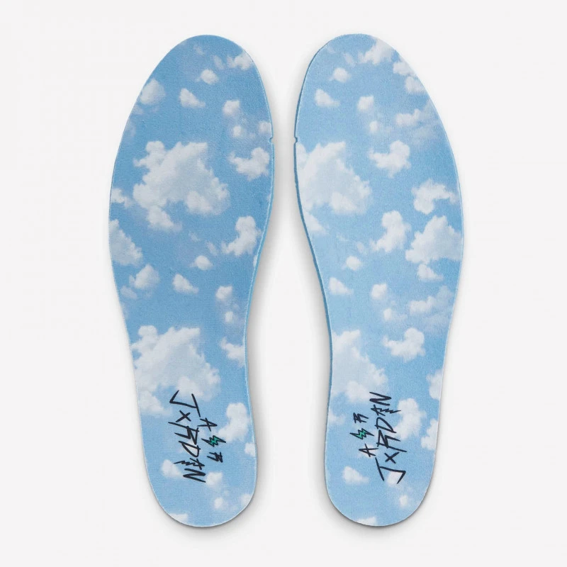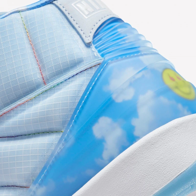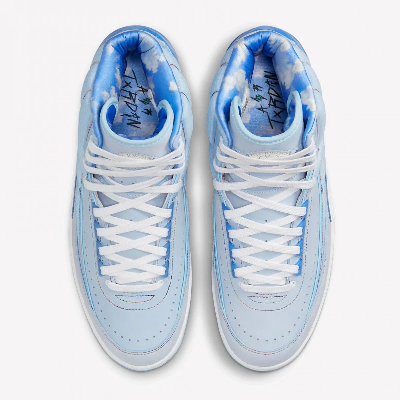 Après une collaboration sur la Air Jordan 1, Jordan Brand et J Balvin remettent le couvert et revisitent la Air Jordan 2 ! La Air Jordan 2 Retro J Balvin Celestine Blue présente une base en nylon matelassé bleu clair sur laquelle on distingue quelques surpiqures rouges. Toujours dans des tons aériens, la doublure et le renfort talon en TPU affichent un imprimé nuageux. Du côté des brandings, on retrouve un logo Wings phosphorescent sur la languette, tandis que le caractéristique smiley de J Balvin est présent sur le talon. L’artiste colombien et et la marque au Jumpman poursuivent leur travail conjoint avec un modèle au coloris léger.